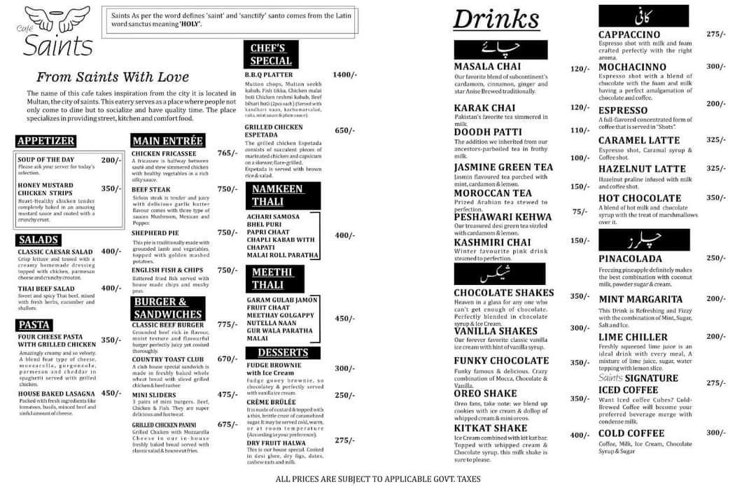 Welcome to Cafe Saints, nestled within the elegant Ramada By Wyndham in Multan. This charming cafe invites you to indulge in a delightful menu that beautifully combines tradition with flair.